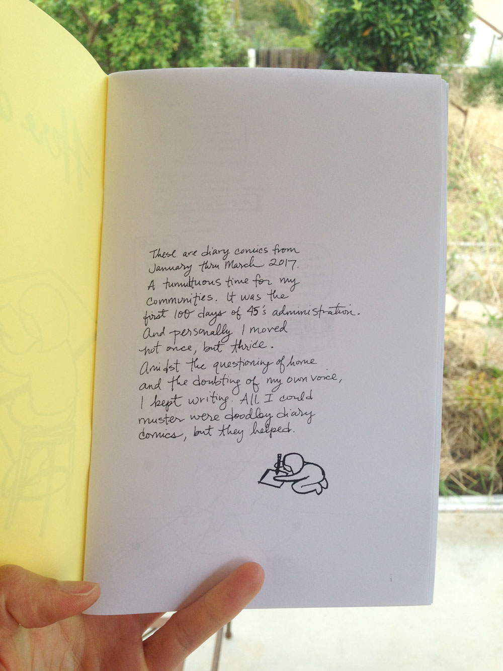 This "Here and Now" zine collects diary comics from between January thru March 2017, a tumultuous time for both our country and in my personal life. It explores themes of home, voice, and daily practices to find grounding amidst tumult.