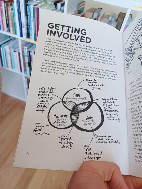 A zine that explores the possibilities of political engagement within community while honoring the complexities of existing as an Asian-American in America. Includes comics, worksheet, and ideas from the field team of APANO (Asian Pacific American Network of Oregon).
