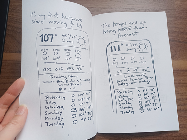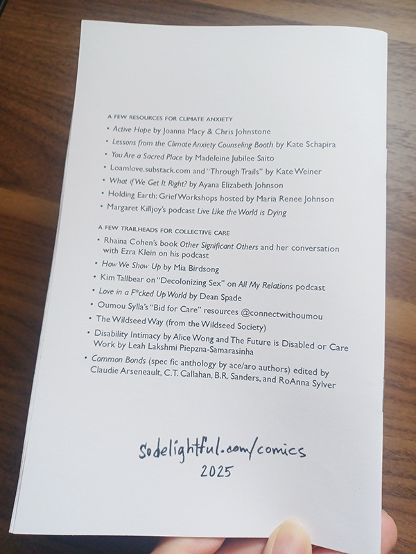 A compilation of 3 diary comics prompted by climate anxiety and wonderings about collective care.