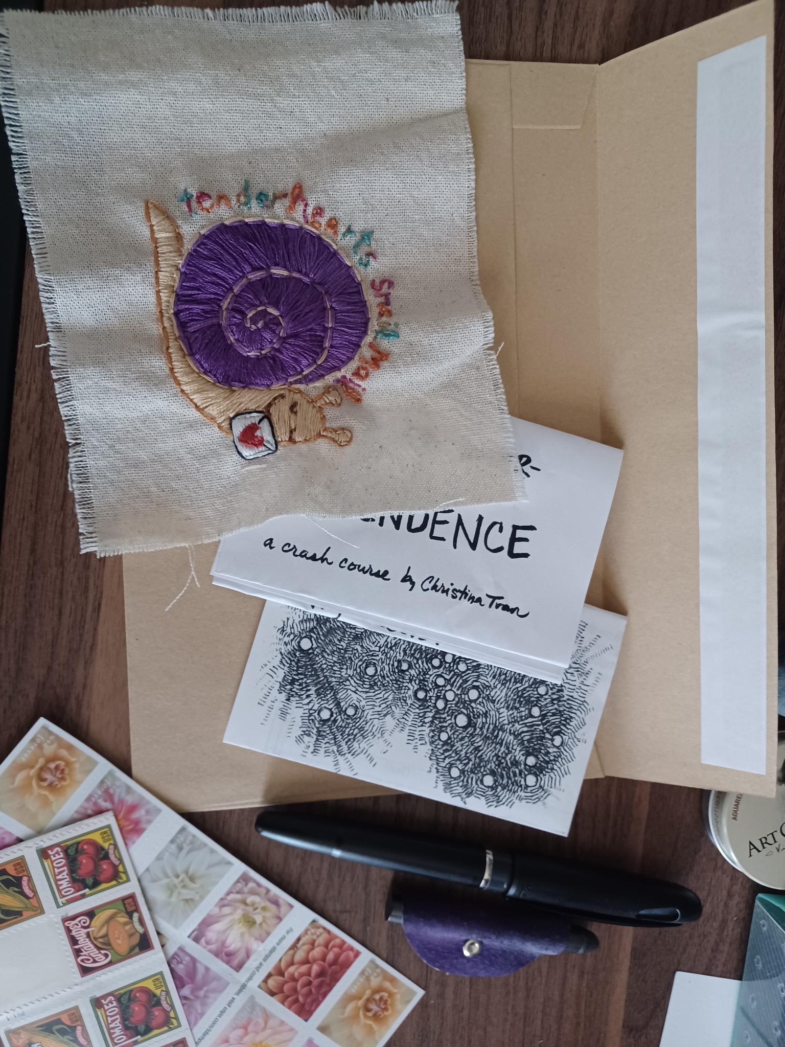 A 12-month zine-a-month subscription service for January December 2026. For $10/month, you will receive a zine made by me and/or by another artist -- curated by me and a surprise to you!